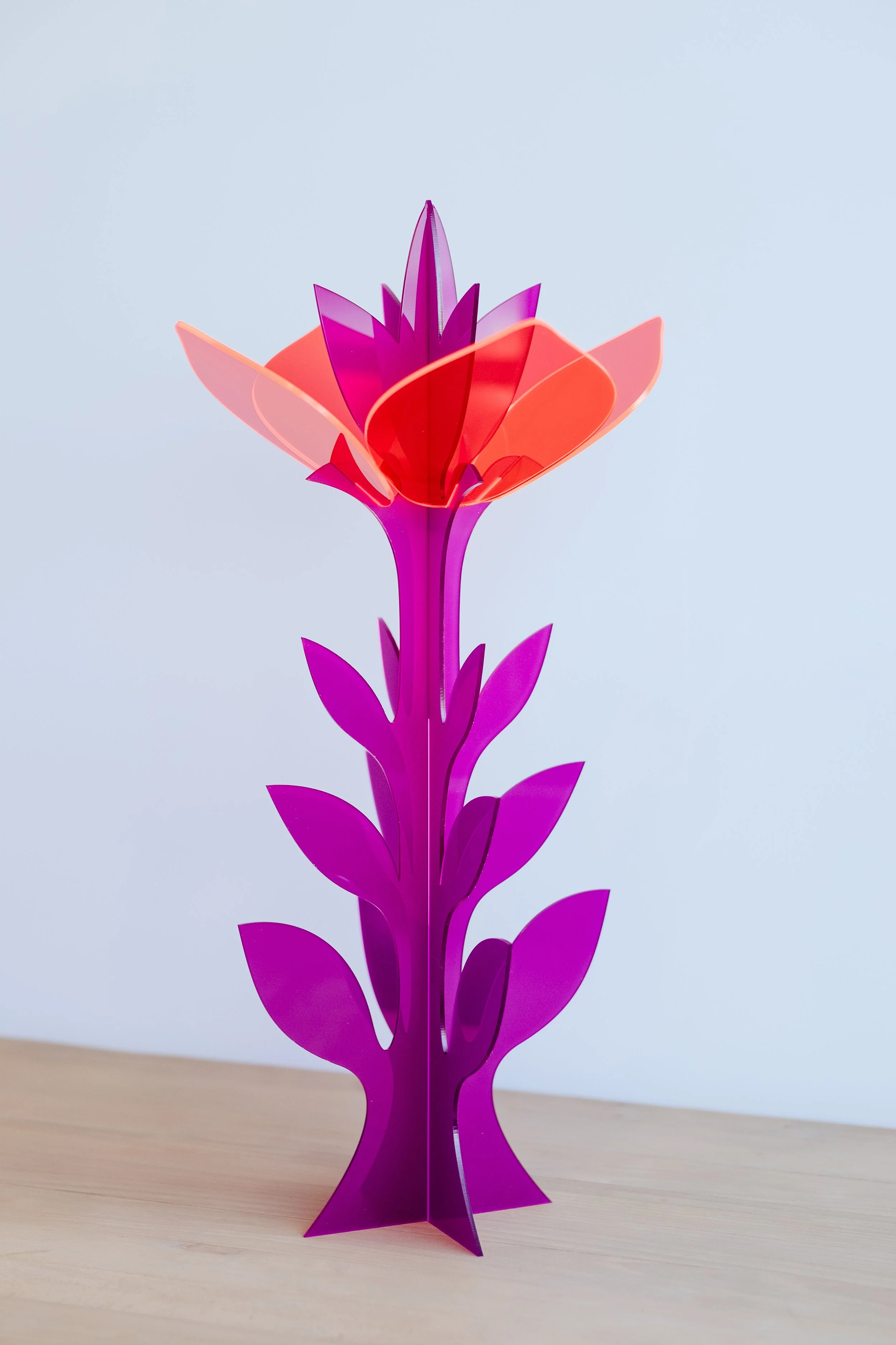 Our 22″ acrylic flower sculptures are a modern, joyful alternative to traditional bouquets. Designed to bring color, personality, and lasting love into any space, these sculptural blooms never fade, and never end up in the trash.