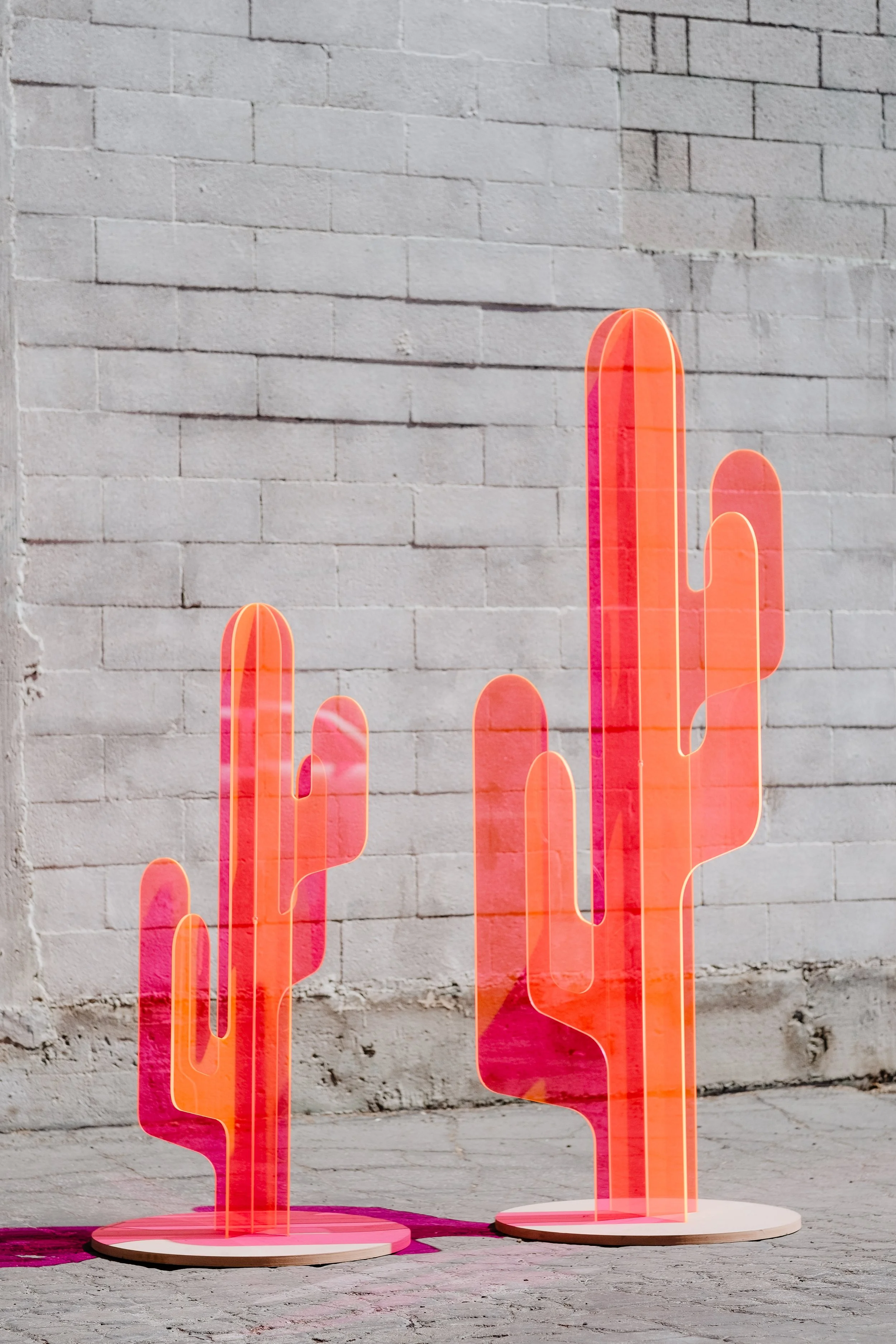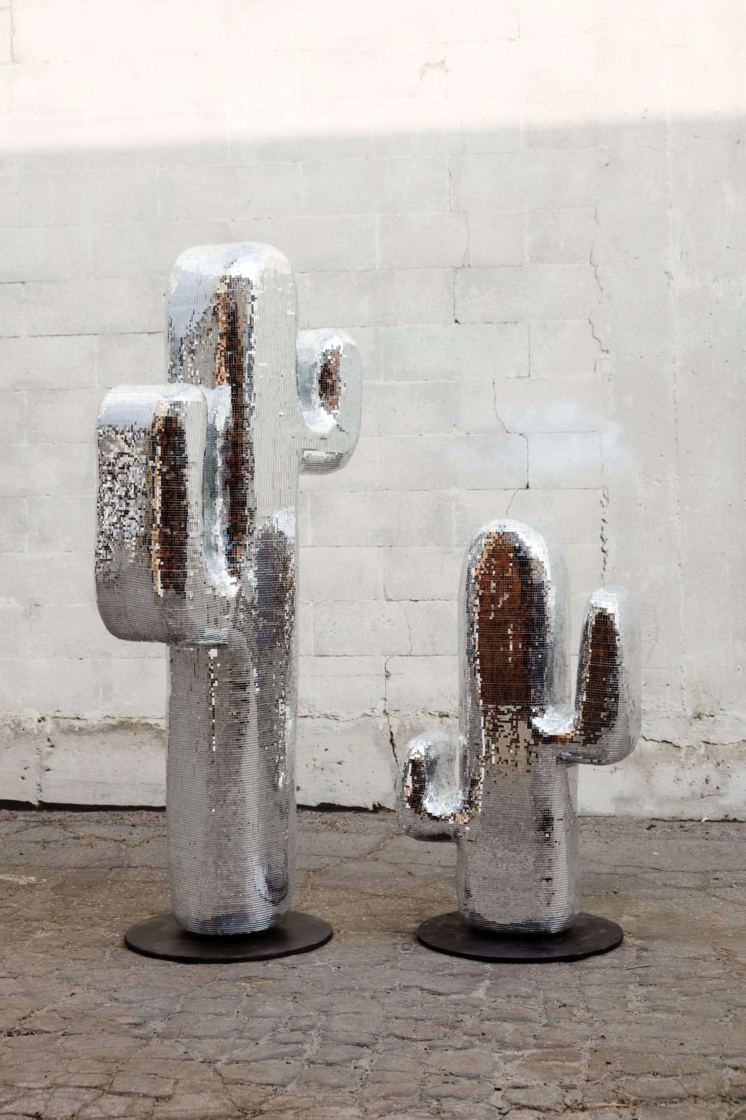 Size: (2) disco cacti each 3' H and (2) disco cacti each 5' H